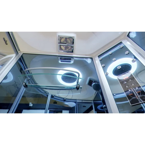 Душевой шланг, Душевая лейка, Держатель для душевой лейки, Подключение для душевого шланга, Полочка, Ручки, Верхний душ, Металлический каркас, Сиденье, Радио, Сифон, Штанга душевая, Ножки
