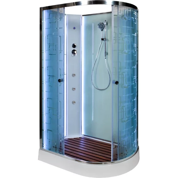 Душевой шланг, Душевая лейка, Держатель для душевой лейки, Полочка, Ручки, LED подсветка, Металлический каркас, Поддон, Смеситель, Сифон, Штанга душевая, Ножки, Зеркало, Настил