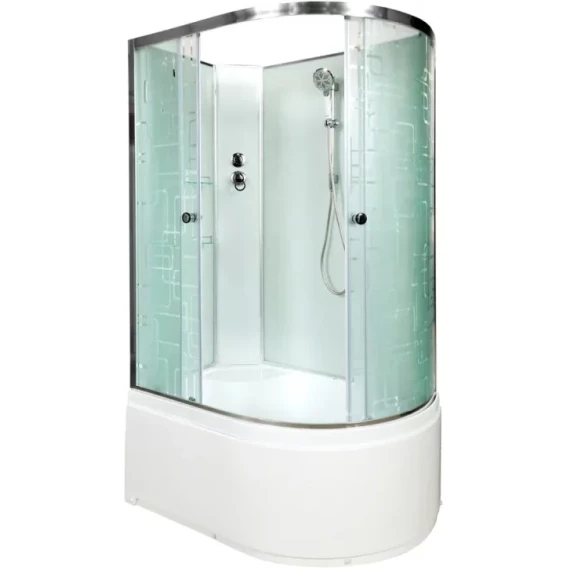Душевой шланг, Душевая лейка, Держатель для душевой лейки, Полочка, Ручки, Металлический каркас, Поддон, Сиденье, Смеситель, Сифон, Штанга душевая, Ножки, Зеркало