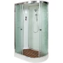 Душевой шланг, Душевая лейка, Держатель для душевой лейки, Полочка, Ручки, Подсветка, Верхний душ, Динамик, Металлический каркас, Поддон, Радио, Смеситель, Сифон, Штанга душевая, Ножки, Зеркало, Настил