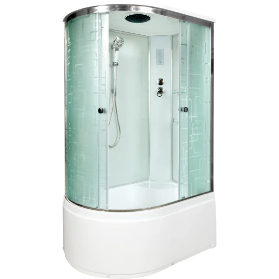 Душевой шланг, Душевая лейка, Держатель для душевой лейки, Полочка, Ручки, Подсветка, Верхний душ, Динамик, Металлический каркас, Поддон, Сиденье, Радио, Смеситель, Сифон, Штанга душевая, Ножки, Зеркало