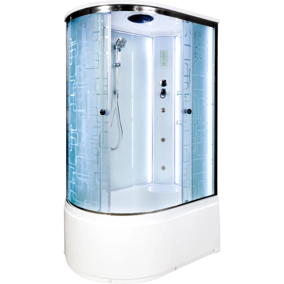Душевой шланг, Душевая лейка, Держатель для душевой лейки, Полочка, Ручки, LED подсветка, Верхний душ, Динамик, Металлический каркас, Поддон, Сиденье, Радио, Смеситель, Сифон, Штанга душевая, Ножки, Зеркало