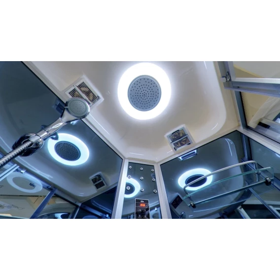 Душевой шланг, Душевая лейка, Держатель для душевой лейки, Подключение для душевого шланга, Полочка, Ручки, Верхний душ, Металлический каркас, Сиденье, Радио, Сифон, Штанга душевая, Ножки