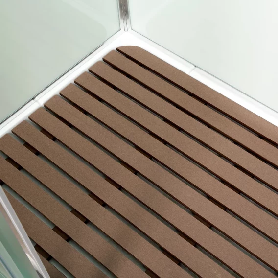 Душевой шланг, Душевая лейка, Держатель для душевой лейки, Полочка, Крючок, Металлический каркас, Ручка, Поддон, Смеситель, Сифон, Штанга душевая, Ножки, Зеркало, Настил