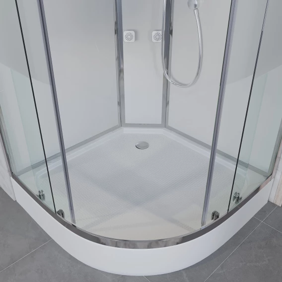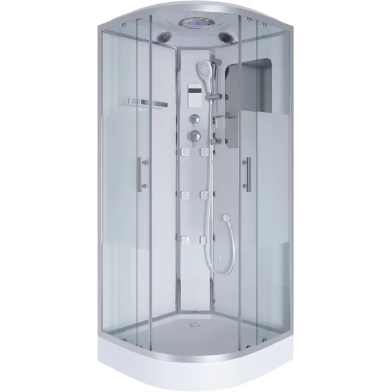 Душевой шланг, Душевая лейка, Держатель для душевой лейки, Подключение для душевого шланга, Полочка, Верхний душ, Динамик, Поддон, Радио, Смеситель, Сифон, Мыльница, Штанга душевая, Ножки, Зеркало