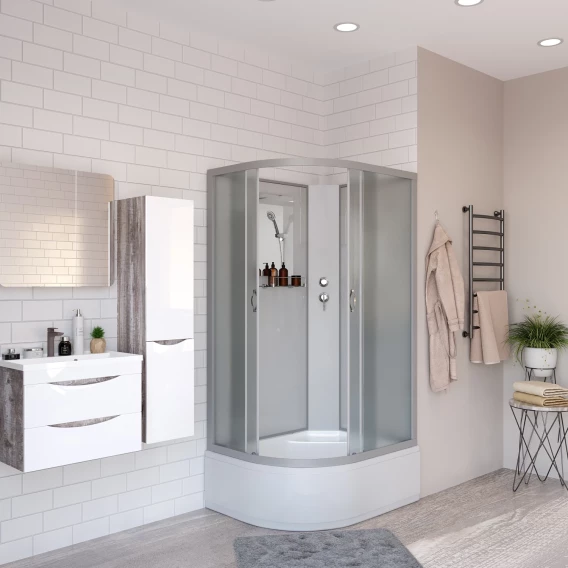 Душевой шланг, Душевая лейка, Держатель для душевой лейки, Подключение для душевого шланга, Полочка, Поддон, Сиденье, Смеситель, Сифон, Ножки, Зеркало