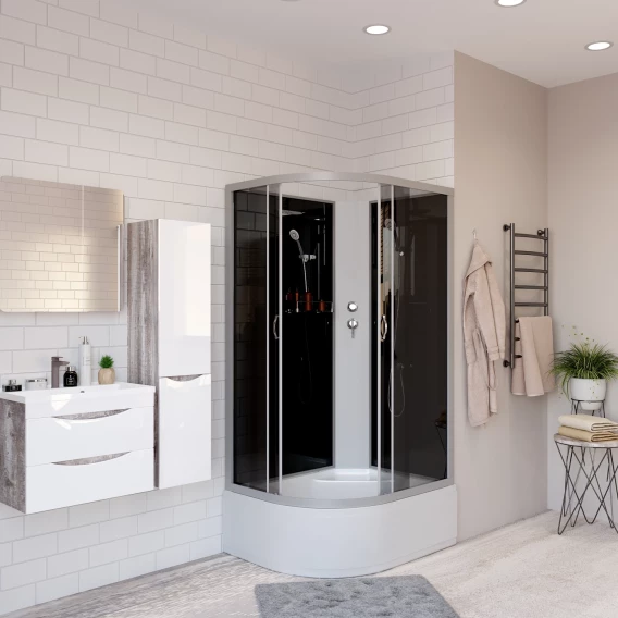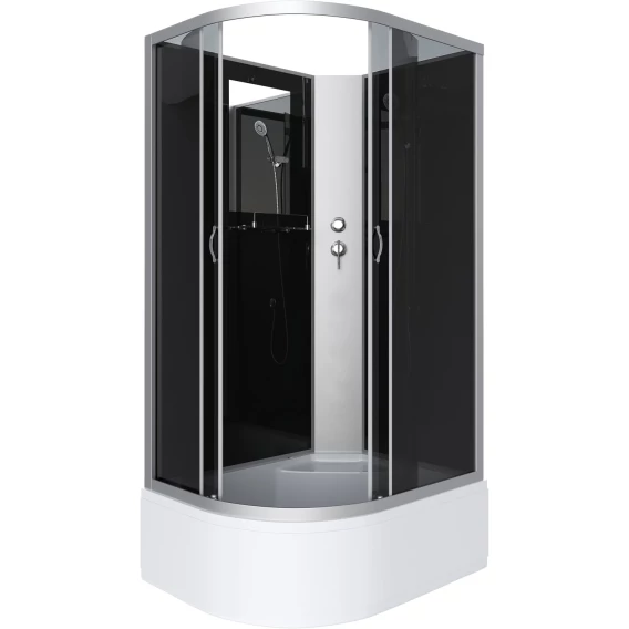 Душевой шланг, Душевая лейка, Держатель для душевой лейки, Подключение для душевого шланга, Полочка, Поддон, Сиденье, Смеситель, Сифон, Ножки, Зеркало