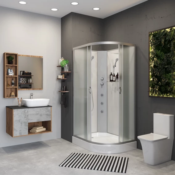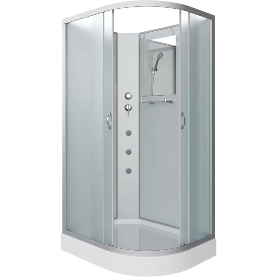Душевой шланг, Душевая лейка, Держатель для душевой лейки, Подключение для душевого шланга, Полочка, Поддон, Смеситель, Сифон, Ножки, Зеркало