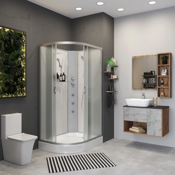 Душевой шланг, Душевая лейка, Держатель для душевой лейки, Подключение для душевого шланга, Полочка, Поддон, Смеситель, Сифон, Ножки, Зеркало