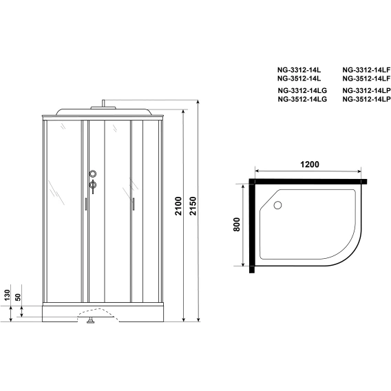 Душевая кабина 120x80x215 см Niagara NG-3312-14LG матовое