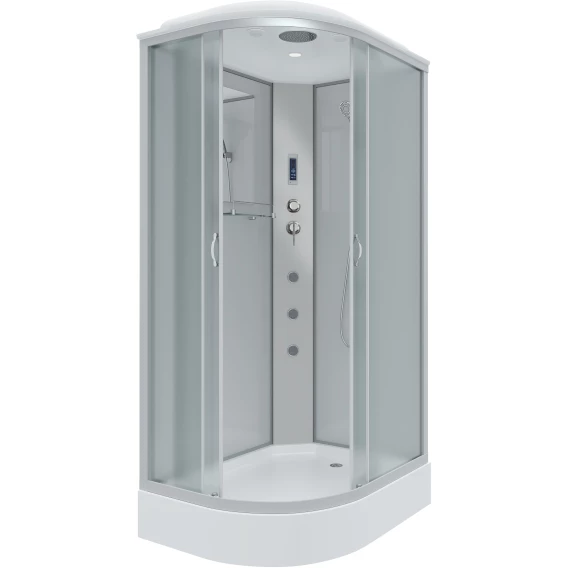 Душевой шланг, Душевая лейка, Держатель для душевой лейки, Подключение для душевого шланга, Полочка, Верхний душ, Динамик, Поддон, Радио, Смеситель, Сифон, Ножки, Зеркало