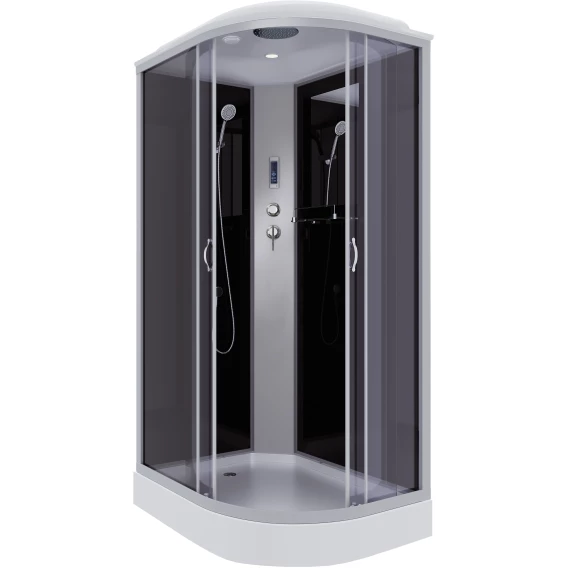 Душевой шланг, Душевая лейка, Держатель для душевой лейки, Подключение для душевого шланга, Полочка, Верхний душ, Динамик, Поддон, Радио, Смеситель, Сифон, Ножки, Зеркало