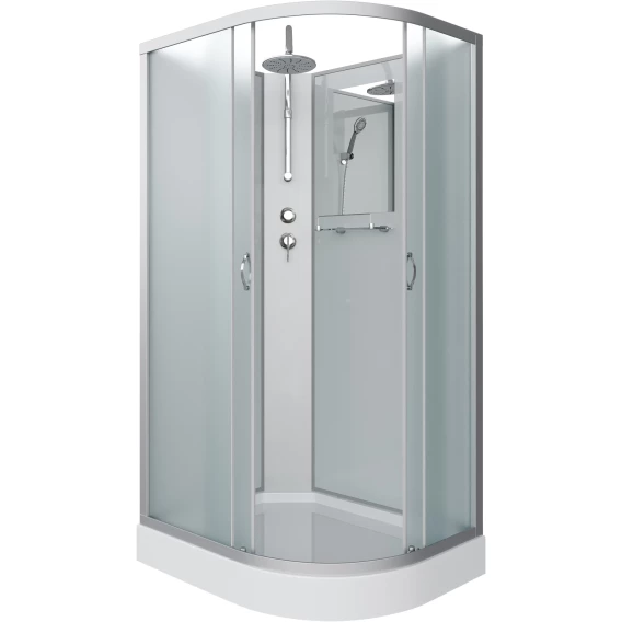Душевой шланг, Душевая лейка, Держатель для душевой лейки, Подключение для душевого шланга, Полочка, Верхний душ, Поддон, Смеситель, Сифон, Кронштейн, Ножки, Зеркало