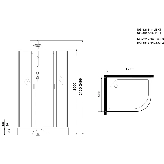 Душевая кабина 120x80x240 см Niagara NG-3312-14LBKT матовое