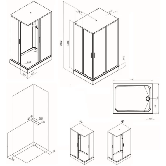 Душевой шланг, Душевая лейка, Держатель для душевой лейки, Подключение для душевого шланга, Полочка, Верхний душ, Панель для поддона, Металлический каркас, Поддон, Смеситель, Сифон, Штанга душевая, Ножки