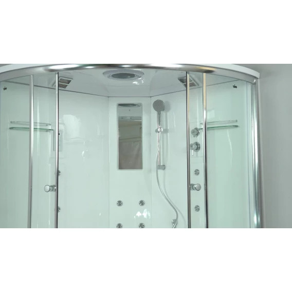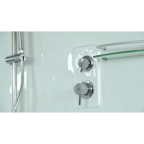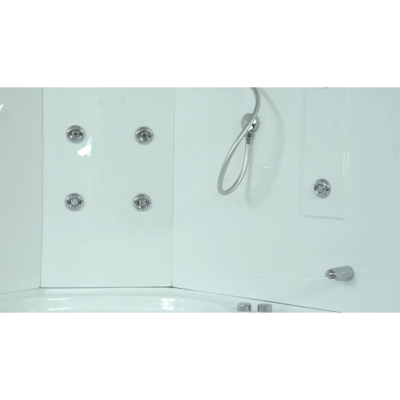 Душевой шланг, Душевая лейка, Держатель для душевой лейки, Подключение для душевого шланга, Полочка, Ручки, Верхний душ, Металлический каркас, Сиденье, Радио, Излив, Сифон, Штанга душевая, Ножки, Зеркало