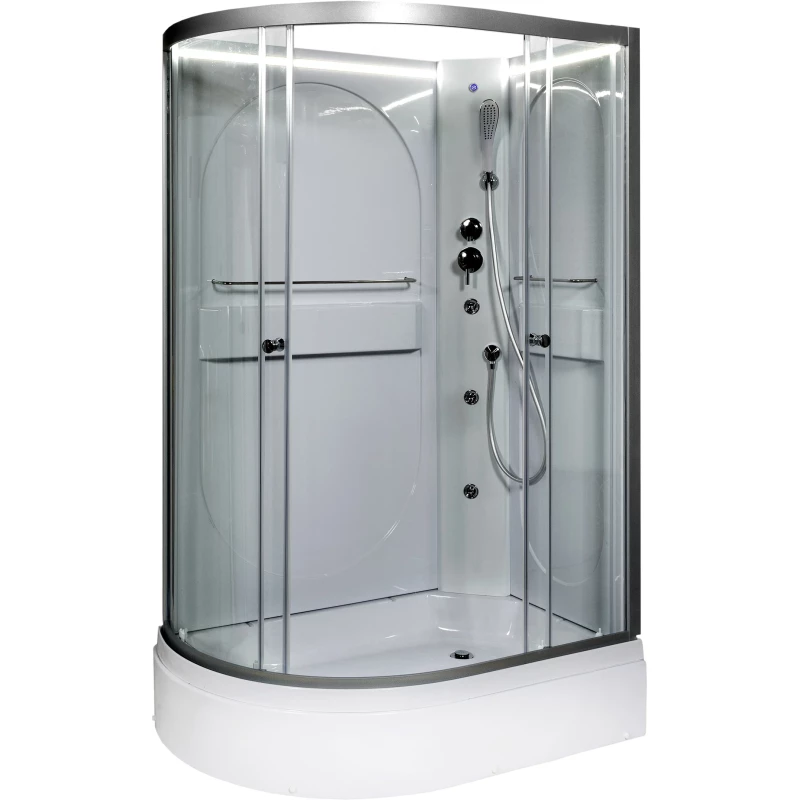 Душевой шланг, Душевая лейка, Держатель для душевой лейки, Подключение для душевого шланга, Ручки, LED подсветка, Металлический каркас, Поддон, Смеситель, Сифон, Ножки