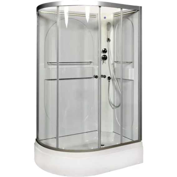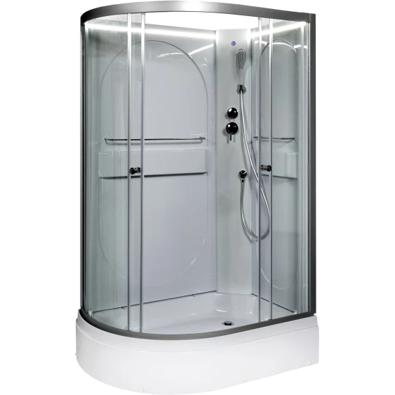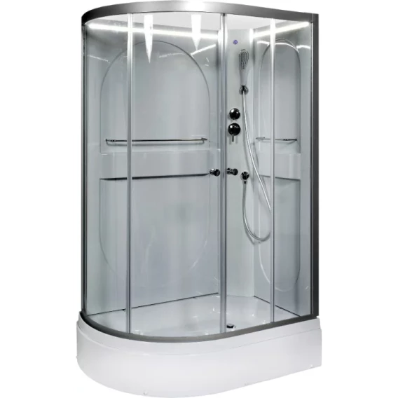Душевой шланг, Душевая лейка, Держатель для душевой лейки, Подключение для душевого шланга, Ручки, LED подсветка, Металлический каркас, Поддон, Смеситель, Сифон, Ножки