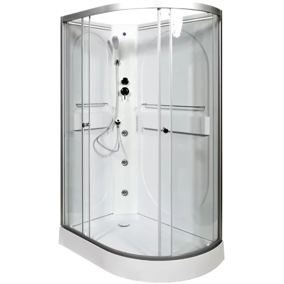 Душевой шланг, Душевая лейка, Держатель для душевой лейки, Подключение для душевого шланга, Ручки, LED подсветка, Металлический каркас, Поддон, Смеситель, Сифон, Ножки