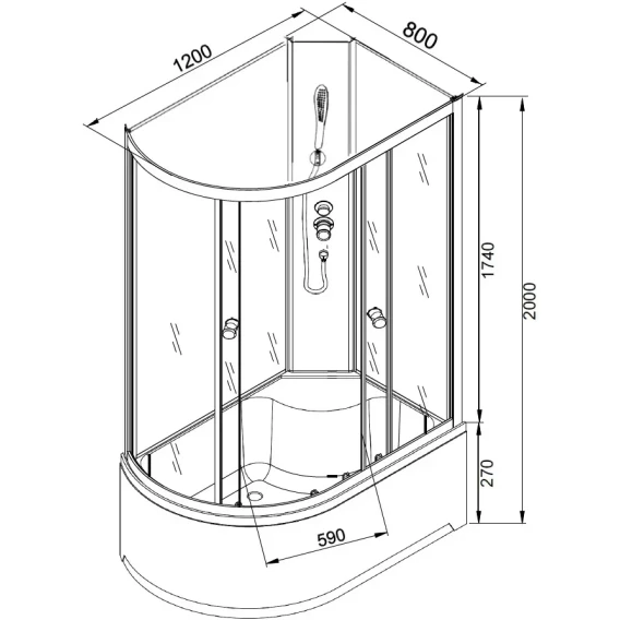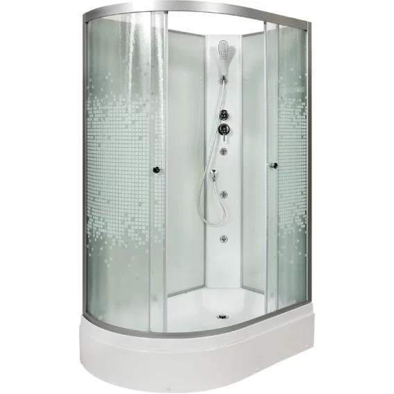 Душевой шланг, Душевая лейка, Держатель для душевой лейки, Подключение для душевого шланга, Ручки, Металлический каркас, Поддон, Смеситель, Сифон, Ножки