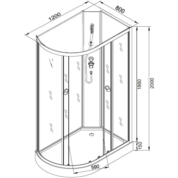 Душевая кабина 120x80x215 см Deto L920L интимато