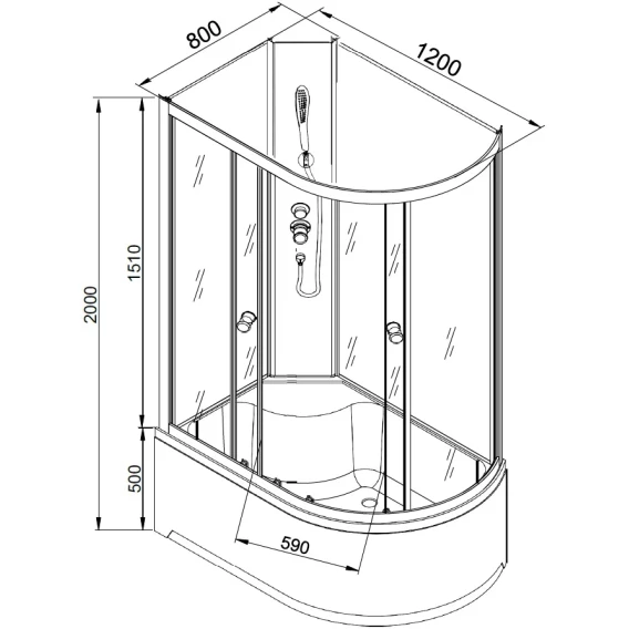 Душевая кабина 120x80x200 см Deto L902LN интимато