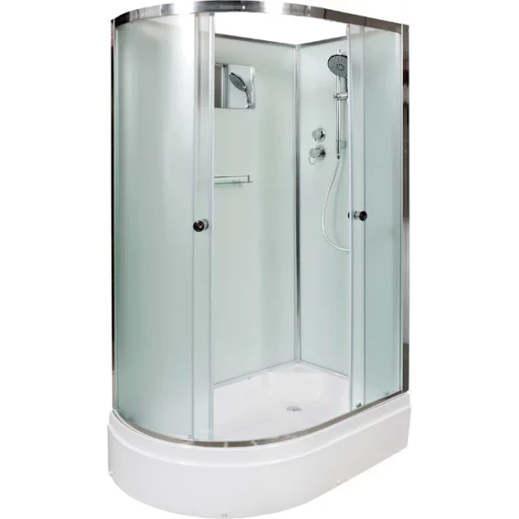 Душевой шланг, Душевая лейка, Держатель для душевой лейки, Полочка, Ручки, Крючок, Металлический каркас, Поддон, Смеситель, Сифон, Штанга душевая, Ножки, Зеркало