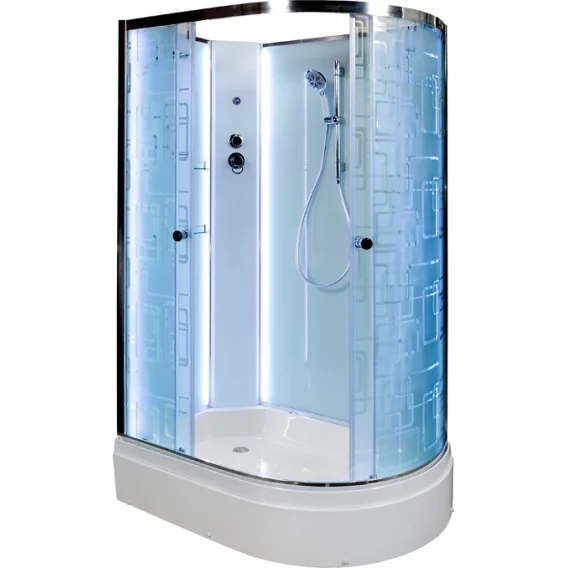 Душевой шланг, Душевая лейка, Держатель для душевой лейки, Полочка, Ручки, LED подсветка, Металлический каркас, Поддон, Смеситель, Сифон, Штанга душевая, Ножки, Зеркало