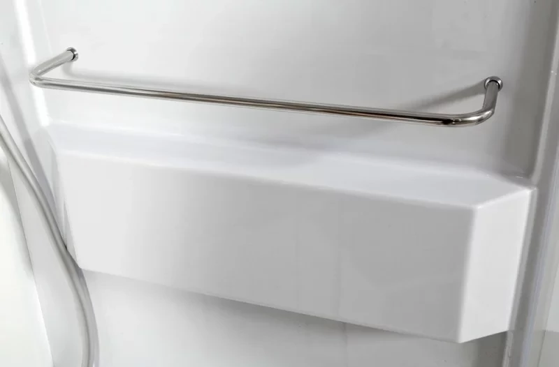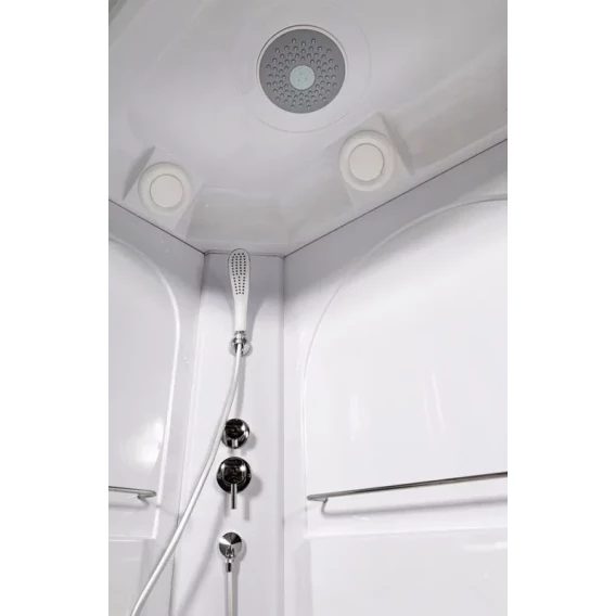 Душевой шланг, Душевая лейка, Держатель для душевой лейки, Подключение для душевого шланга, Ручки, Верхний душ, Металлический каркас, Поддон, Смеситель, Сифон, Ножки