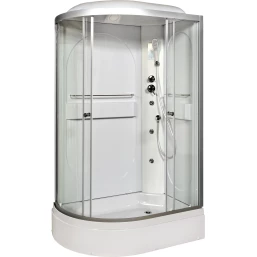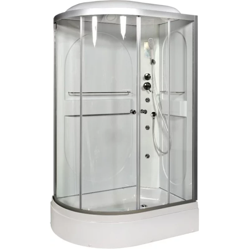 Душевой шланг, Душевая лейка, Держатель для душевой лейки, Подключение для душевого шланга, Ручки, Подсветка, Верхний душ, Динамик, Металлический каркас, Поддон, Радио, Смеситель, Сифон, Ножки
