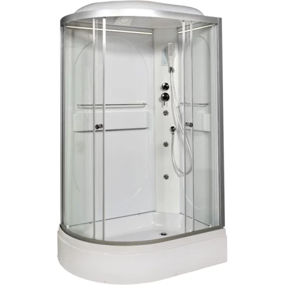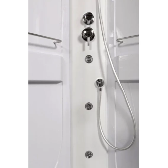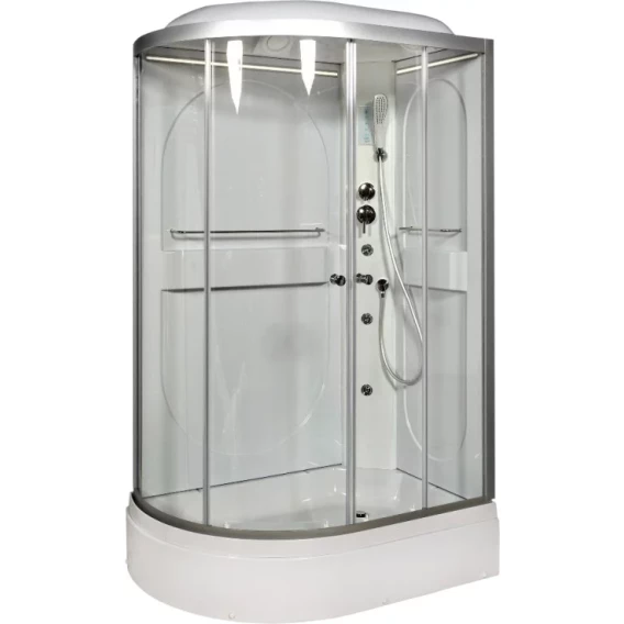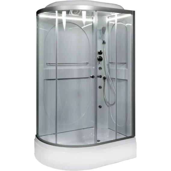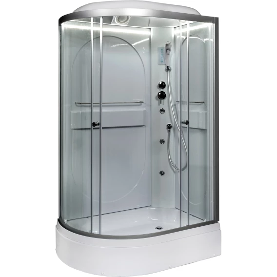 Душевой шланг, Душевая лейка, Держатель для душевой лейки, Подключение для душевого шланга, Ручки, LED подсветка, Верхний душ, Динамик, Металлический каркас, Поддон, Радио, Смеситель, Сифон, Ножки