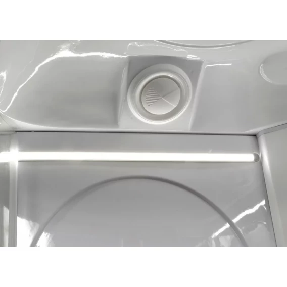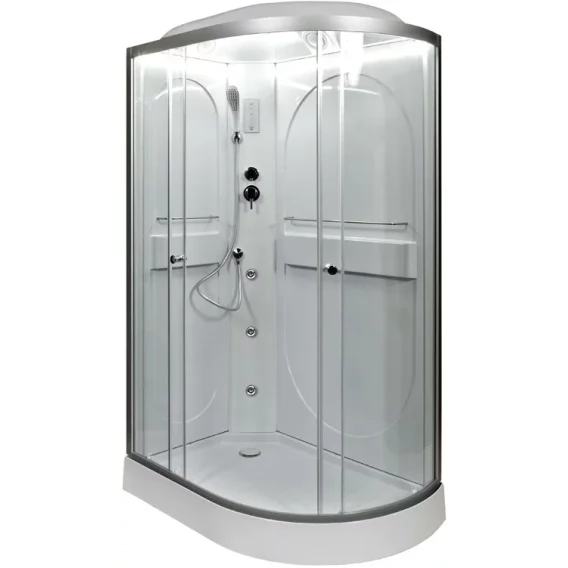 Душевой шланг, Душевая лейка, Держатель для душевой лейки, Подключение для душевого шланга, Ручки, LED подсветка, Верхний душ, Динамик, Металлический каркас, Поддон, Радио, Смеситель, Сифон, Ножки