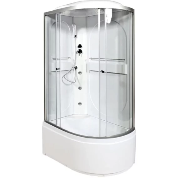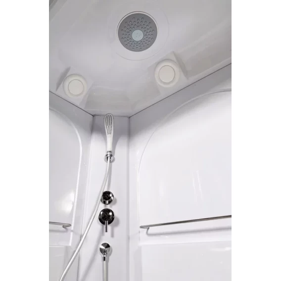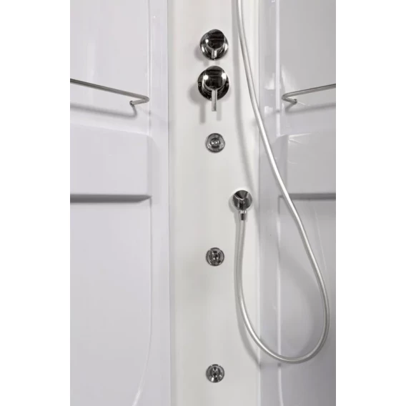 Душевой шланг, Душевая лейка, Держатель для душевой лейки, Подключение для душевого шланга, Ручки, Верхний душ, Металлический каркас, Поддон, Сиденье, Смеситель, Сифон, Ножки