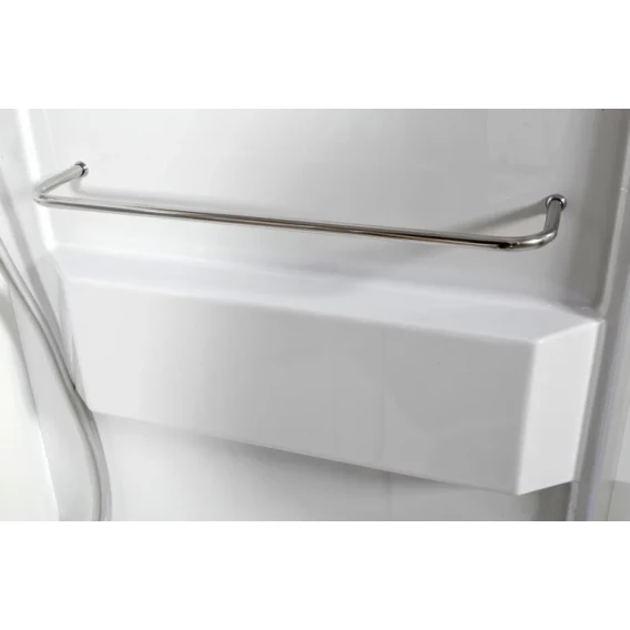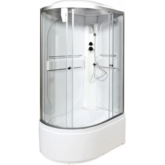 Душевой шланг, Душевая лейка, Держатель для душевой лейки, Подключение для душевого шланга, Ручки, Подсветка, Верхний душ, Динамик, Металлический каркас, Поддон, Сиденье, Радио, Смеситель, Сифон, Ножки