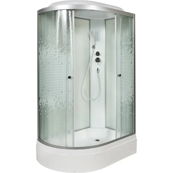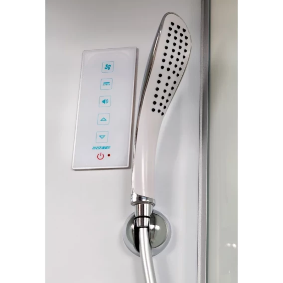 Душевой шланг, Душевая лейка, Держатель для душевой лейки, Подключение для душевого шланга, Ручки, Подсветка, Верхний душ, Динамик, Металлический каркас, Поддон, Радио, Смеситель, Сифон, Ножки