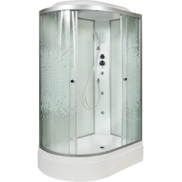 Душевой шланг, Душевая лейка, Держатель для душевой лейки, Подключение для душевого шланга, Ручки, Подсветка, Верхний душ, Динамик, Металлический каркас, Поддон, Радио, Смеситель, Сифон, Ножки