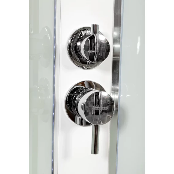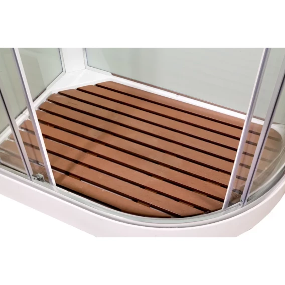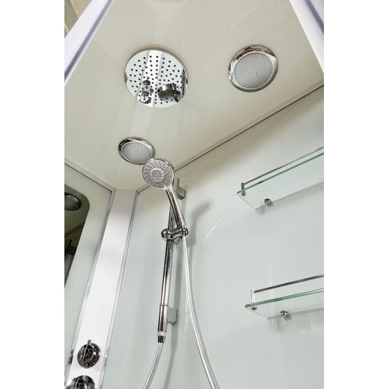 Душевой шланг, Душевая лейка, Держатель для душевой лейки, Полочка, Ручки, Верхний душ, Металлический каркас, Поддон, Смеситель, Сифон, Штанга душевая, Ножки, Зеркало, Настил