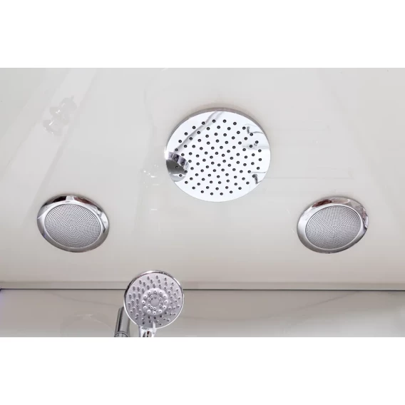 Душевой шланг, Душевая лейка, Держатель для душевой лейки, Полочка, Ручки, LED подсветка, Верхний душ, Металлический каркас, Поддон, Смеситель, Сифон, Штанга душевая, Ножки, Зеркало, Настил