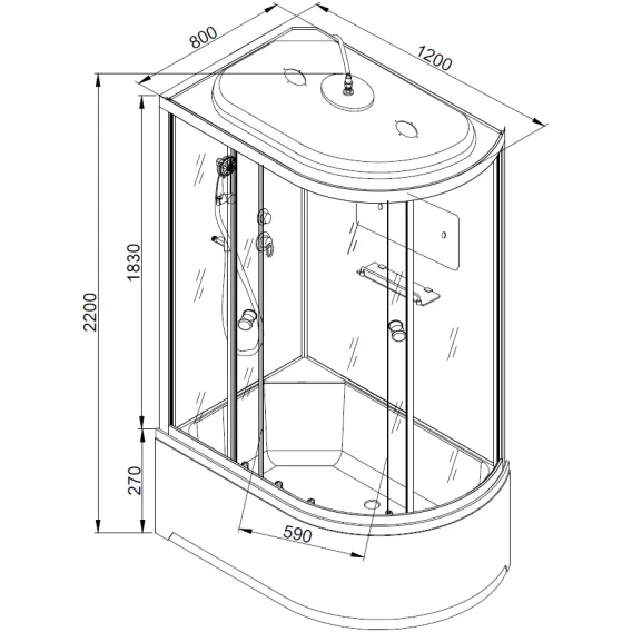 Душевая кабина 120x80x220 см Deto D272SR матовое