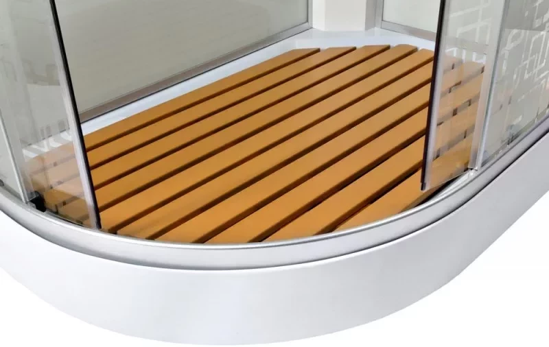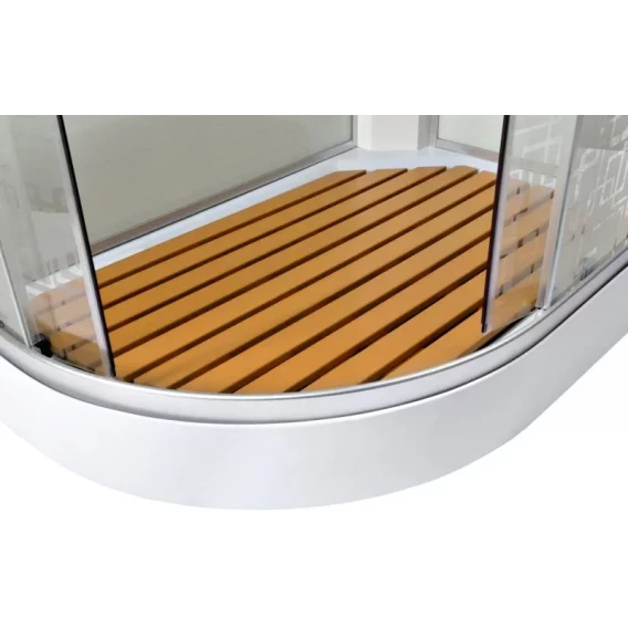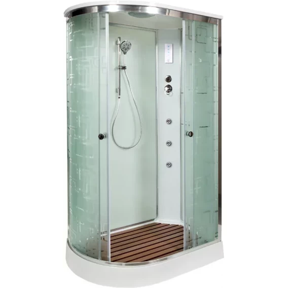 Душевой шланг, Душевая лейка, Держатель для душевой лейки, Полочка, Ручки, Подсветка, Верхний душ, Динамик, Металлический каркас, Поддон, Радио, Смеситель, Сифон, Штанга душевая, Ножки, Зеркало, Настил