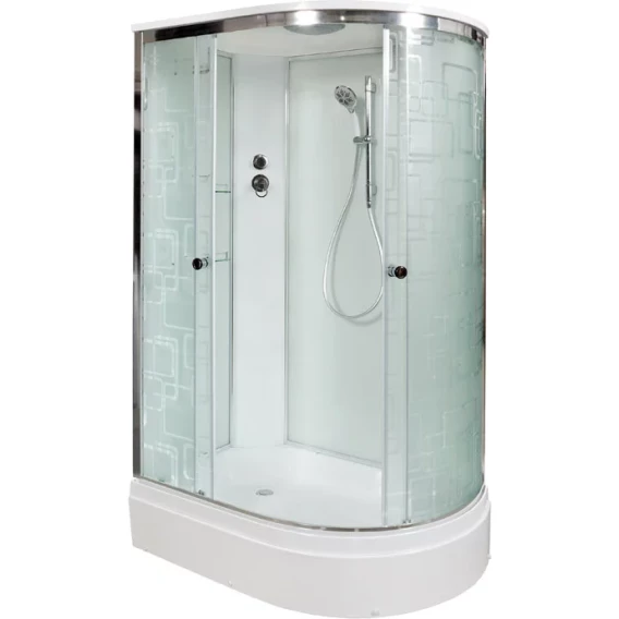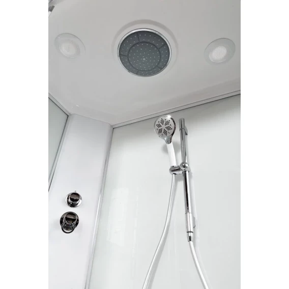 Душевой шланг, Душевая лейка, Держатель для душевой лейки, Полочка, Ручки, Верхний душ, Металлический каркас, Поддон, Смеситель, Сифон, Штанга душевая, Ножки, Зеркало