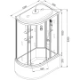 Душевой шланг, Душевая лейка, Держатель для душевой лейки, Полочка, Ручки, Верхний душ, Металлический каркас, Поддон, Смеситель, Сифон, Штанга душевая, Ножки, Зеркало