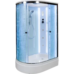 Душевой шланг, Душевая лейка, Держатель для душевой лейки, Полочка, Ручки, LED подсветка, Верхний душ, Динамик, Металлический каркас, Поддон, Радио, Смеситель, Сифон, Штанга душевая, Ножки, Зеркало