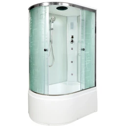 Душевой шланг, Душевая лейка, Держатель для душевой лейки, Полочка, Ручки, Подсветка, Верхний душ, Динамик, Металлический каркас, Поддон, Сиденье, Радио, Смеситель, Сифон, Штанга душевая, Ножки, Зеркало