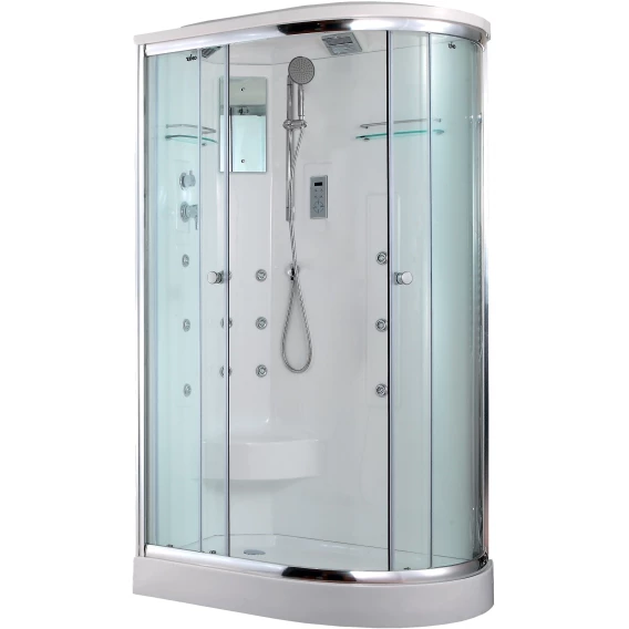Душевой шланг, Душевая лейка, Держатель для душевой лейки, Подключение для душевого шланга, Полочка, Ручки, Верхний душ, Металлический каркас, Сиденье, Радио, Сифон, Штанга душевая, Ножки, Зеркало