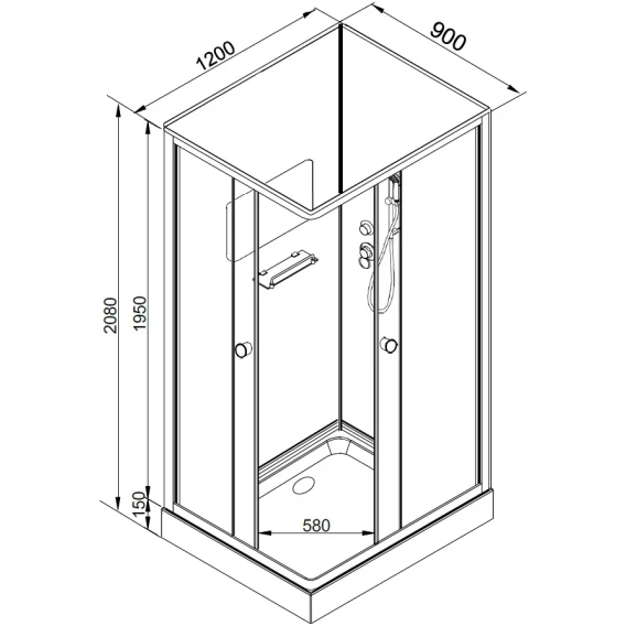 Душевая кабина 120x90x208 см Deto K402 прозрачное