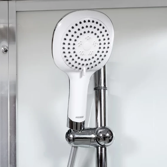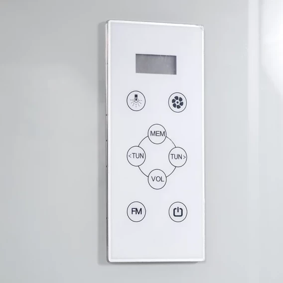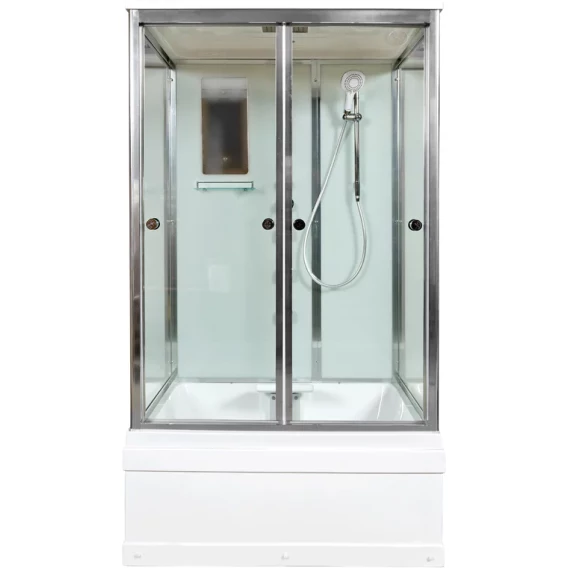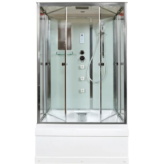 Душевой шланг, Душевая лейка, Держатель для душевой лейки, Полочка, Ручки, Подсветка, Верхний душ, Динамик, Поддон, Сиденье, Радио, Смеситель, Сифон, Штанга душевая, Ножки, Зеркало