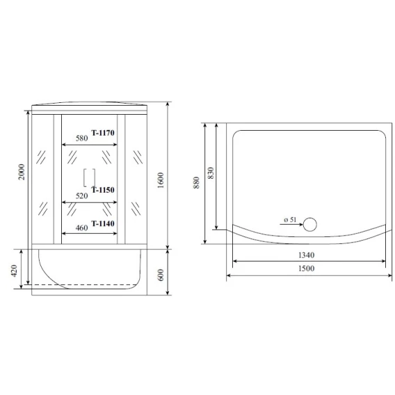 Душевая кабина 150x88x220 см Timo Standart T-1150 тонированное