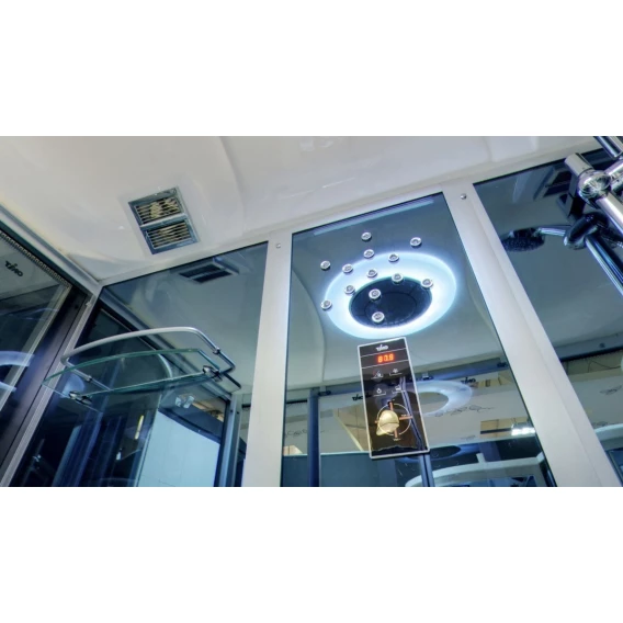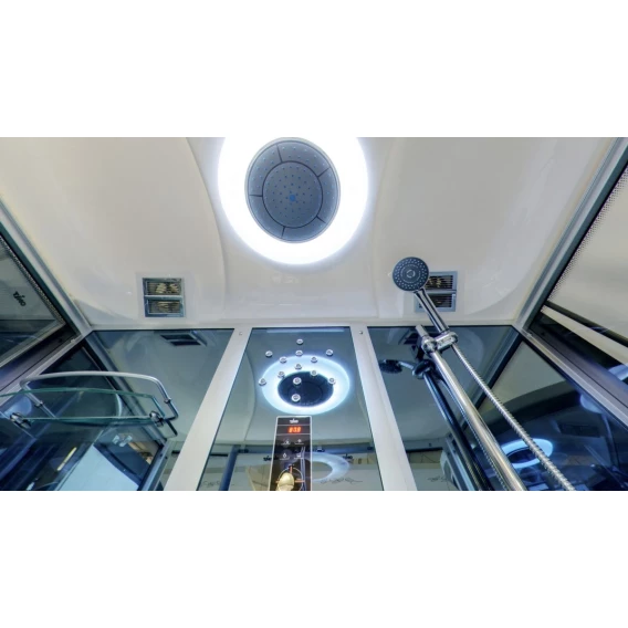 Душевой шланг, Душевая лейка, Держатель для душевой лейки, Подключение для душевого шланга, Полочка, Ручки, Верхний душ, Металлический каркас, Подголовник, Радио, Излив, Слив-перелив, Штанга душевая, Ножки