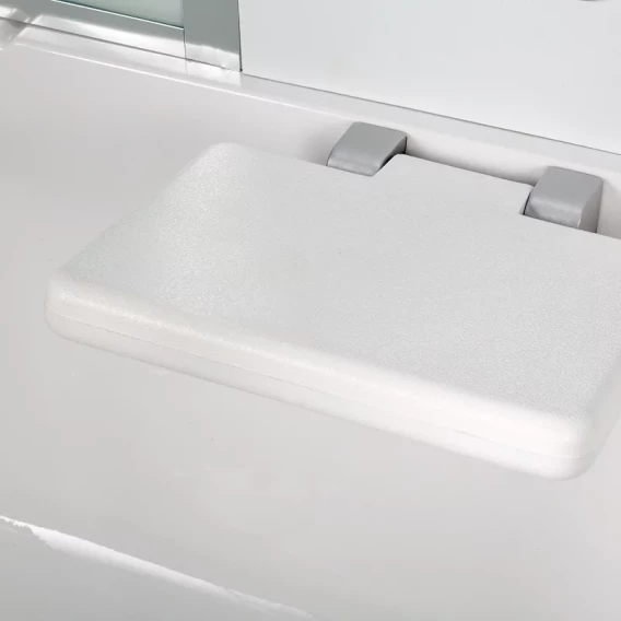 Душевой шланг, Душевая лейка, Держатель для душевой лейки, Полочка, Ручки, Верхний душ, Металлический каркас, Поддон, Сиденье, Смеситель, Слив-перелив, Штанга душевая, Ножки, Зеркало